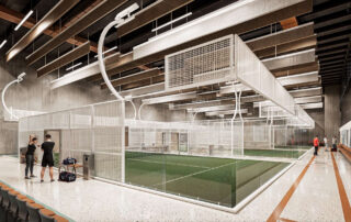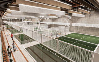 The indoor area, has courts for football, basketball, tennis, sand volleyball and padel tennis