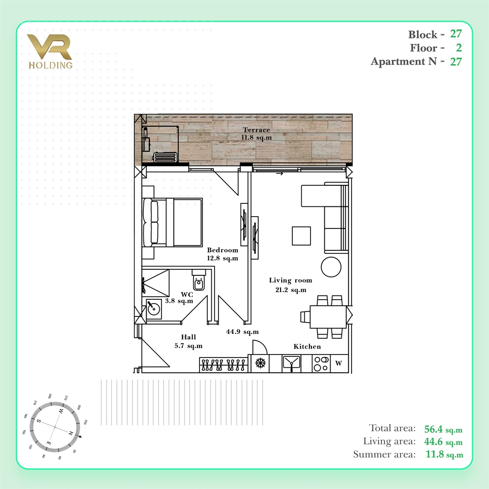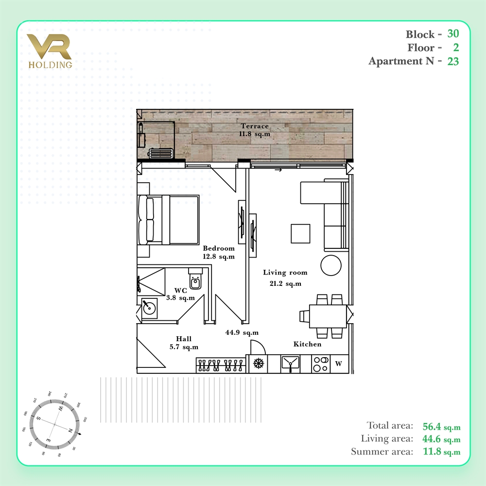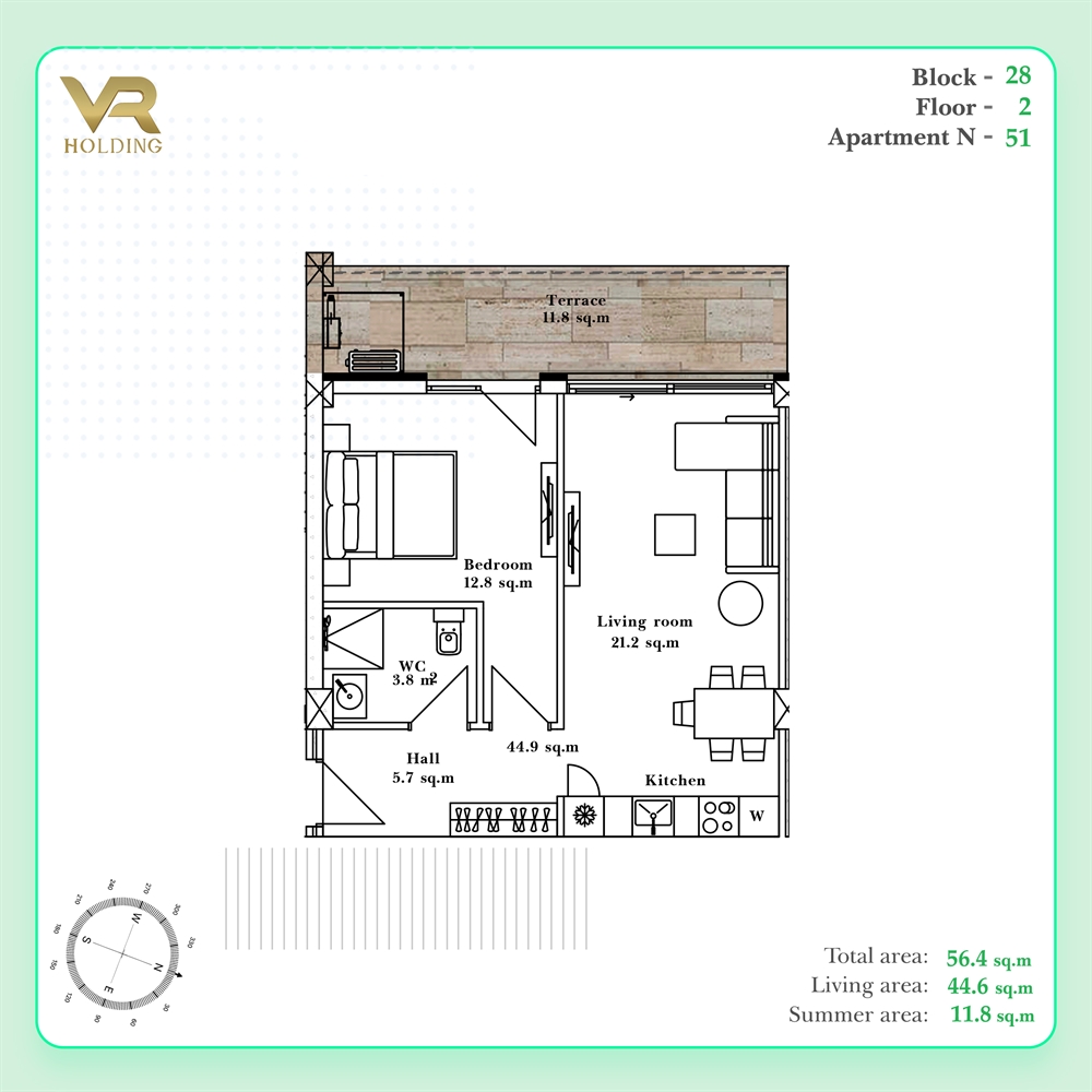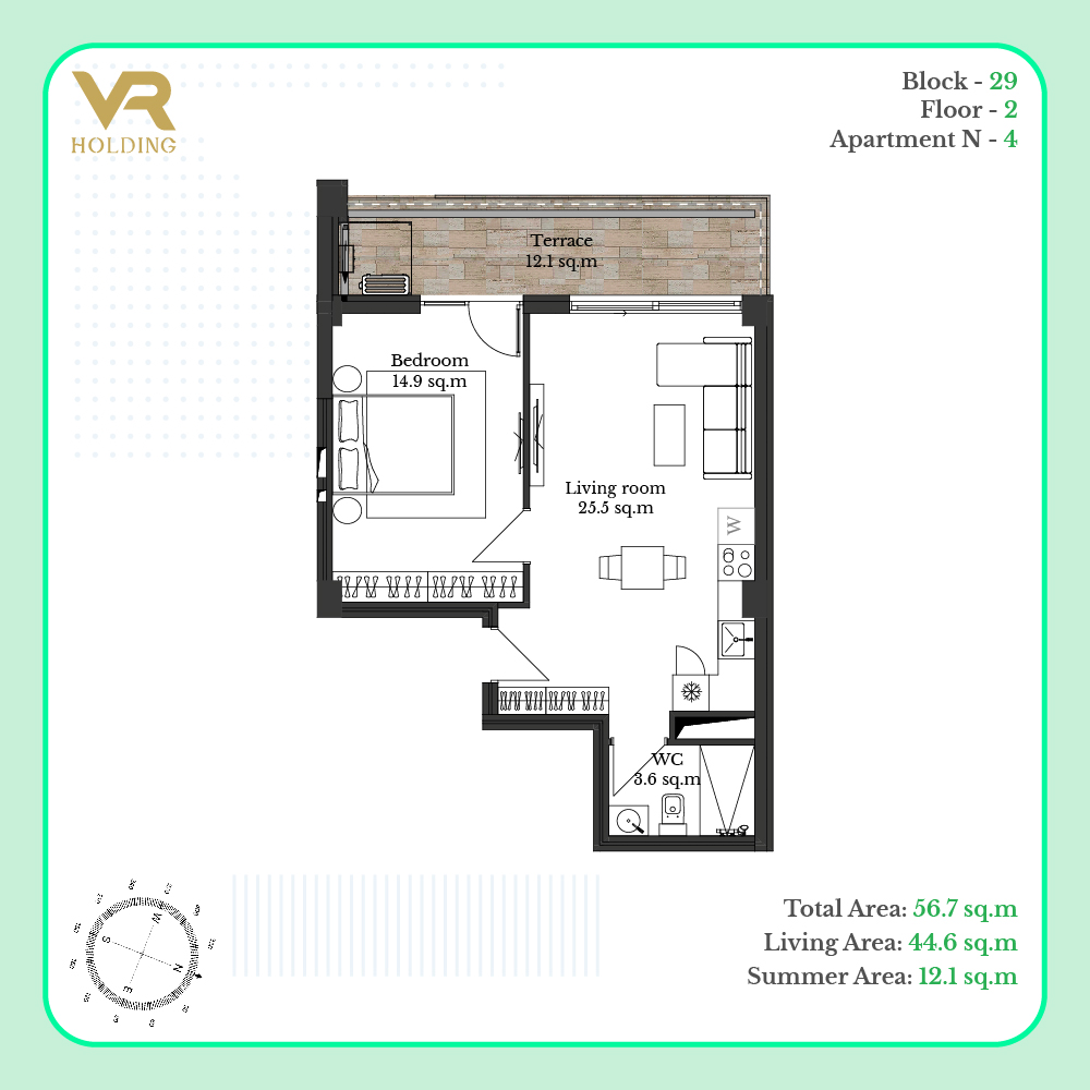 ბინა 51 - 56.4 კვ.მ. - თავისუფალია