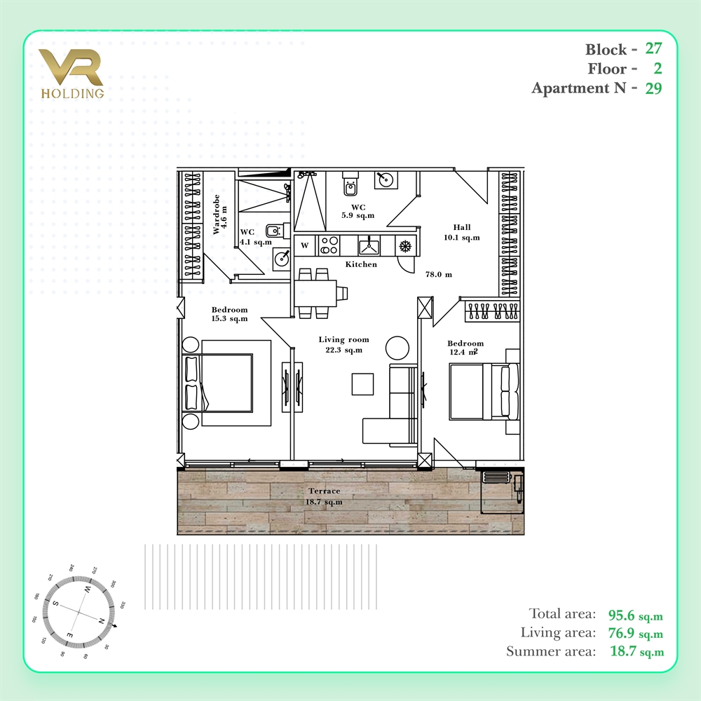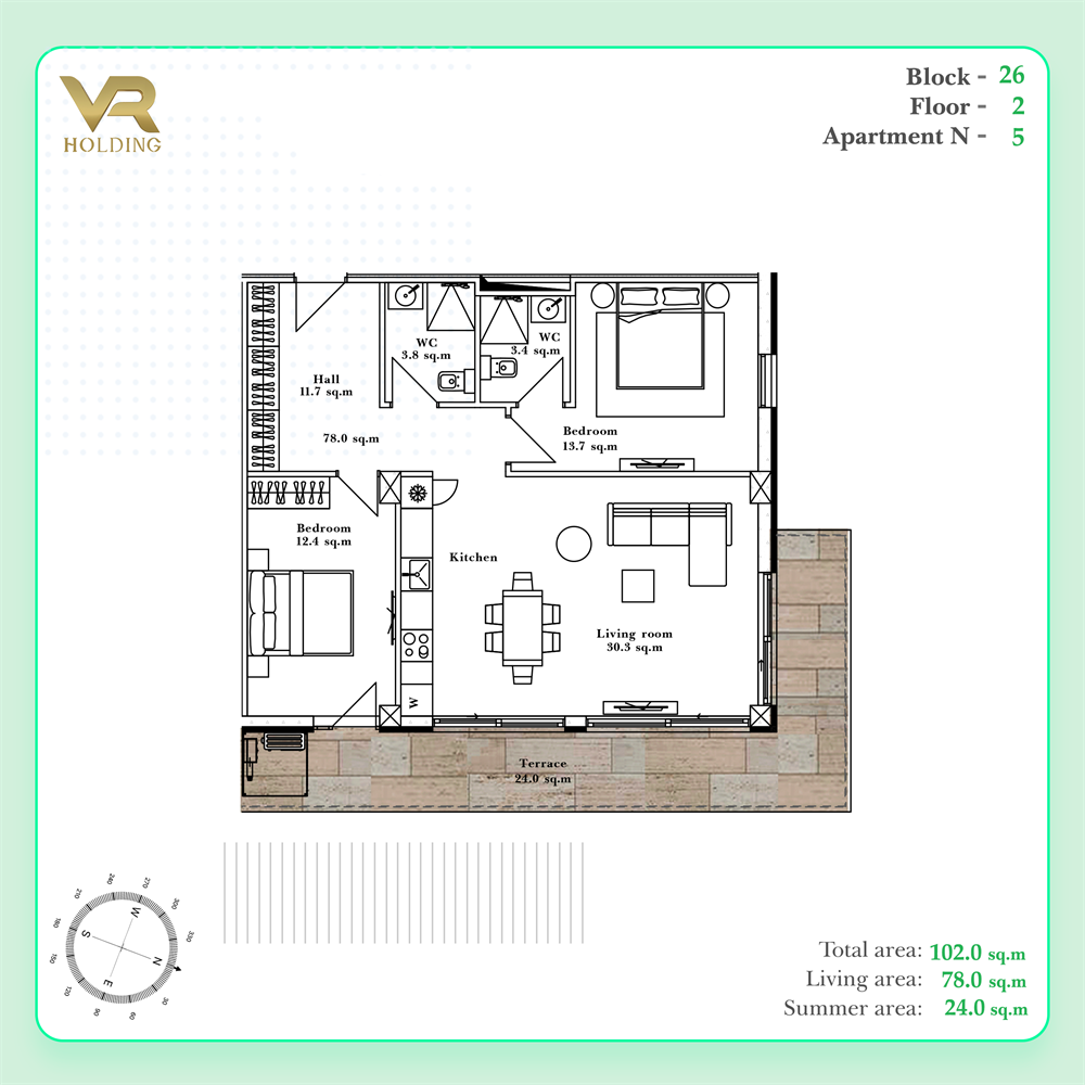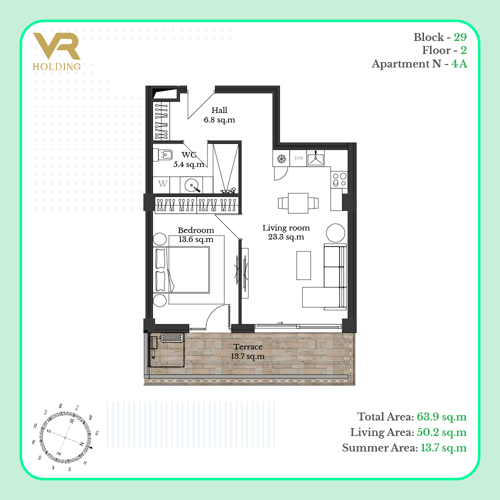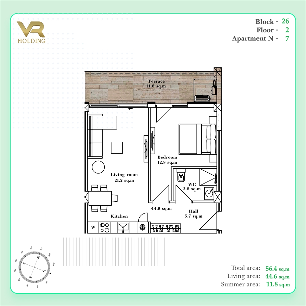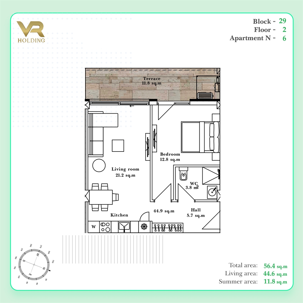ბინა 51 - 56.4 კვ.მ. - თავისუფალია
