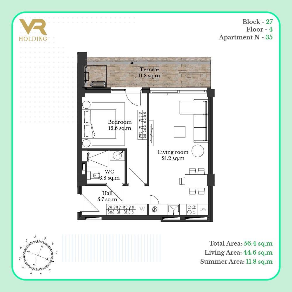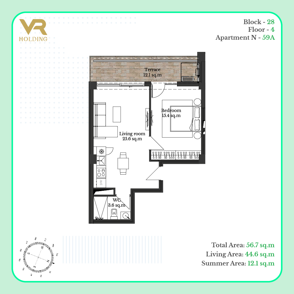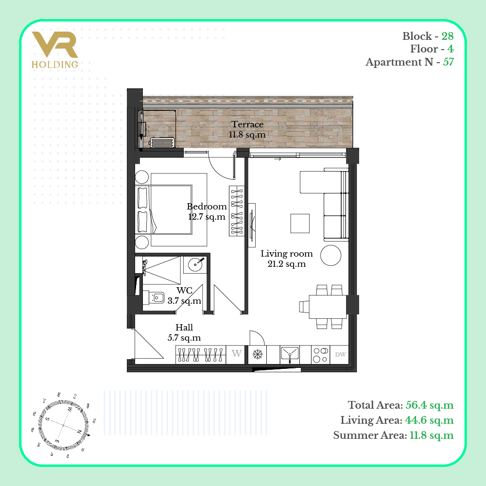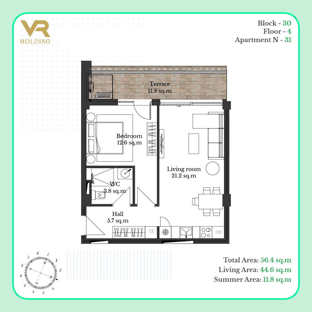 ბინა 31 - 56.4 კვ.მ. - თავისუფალია