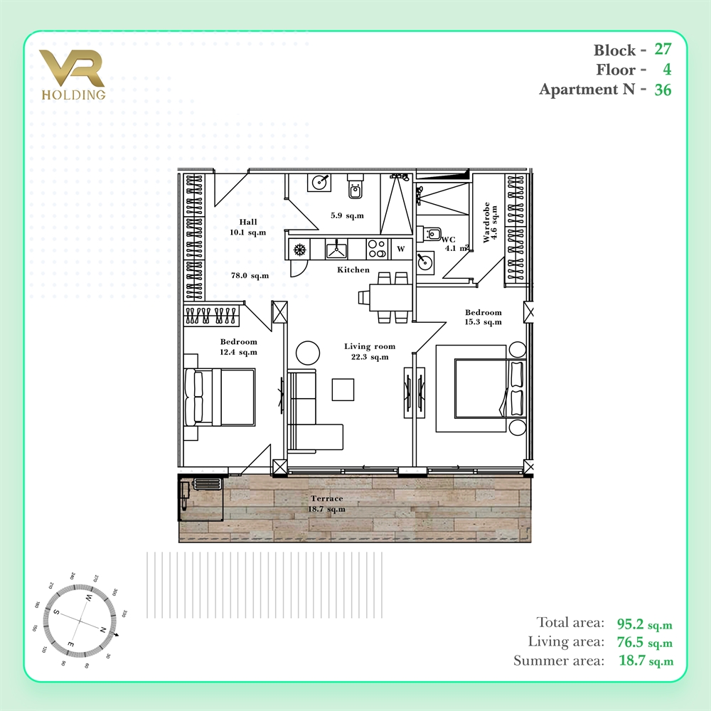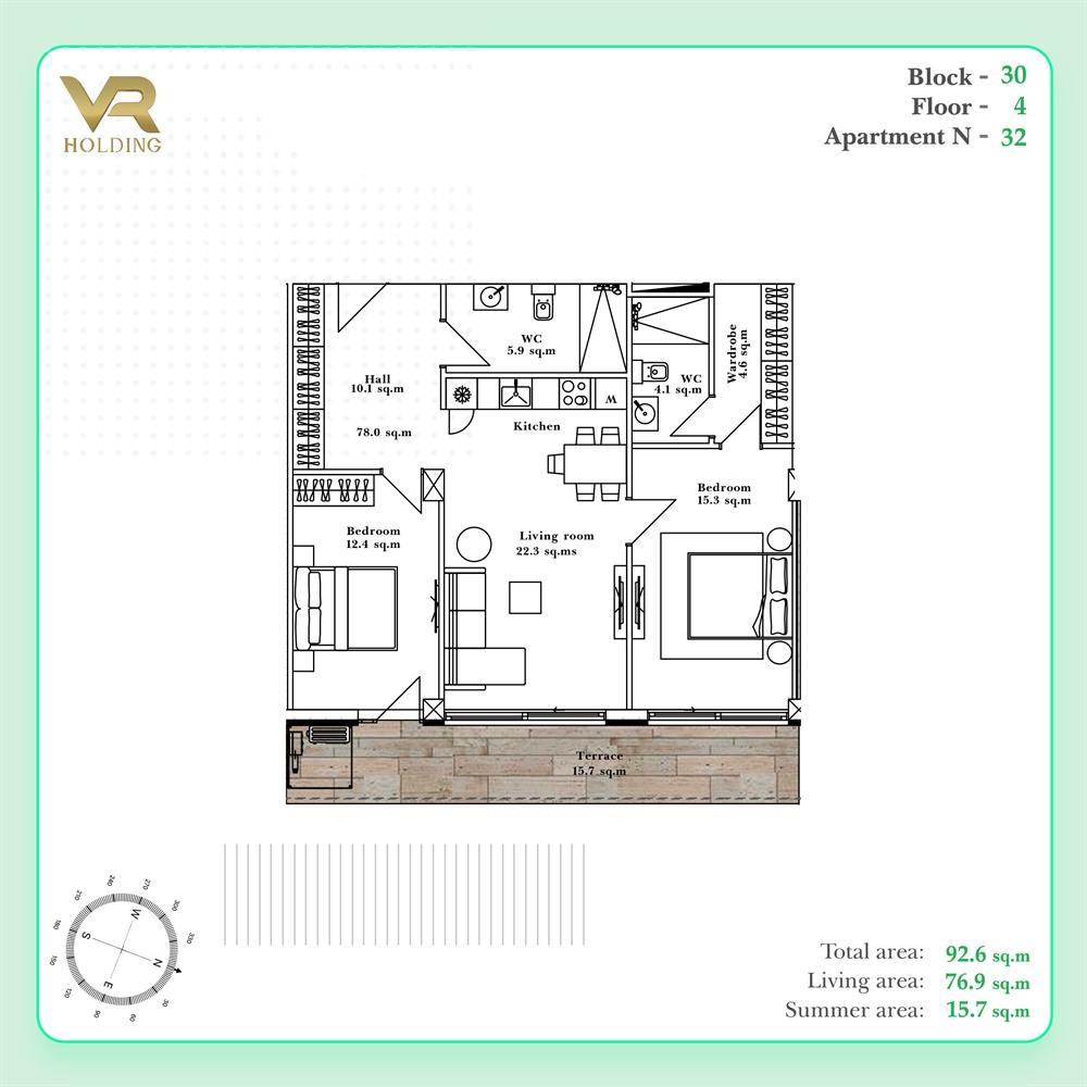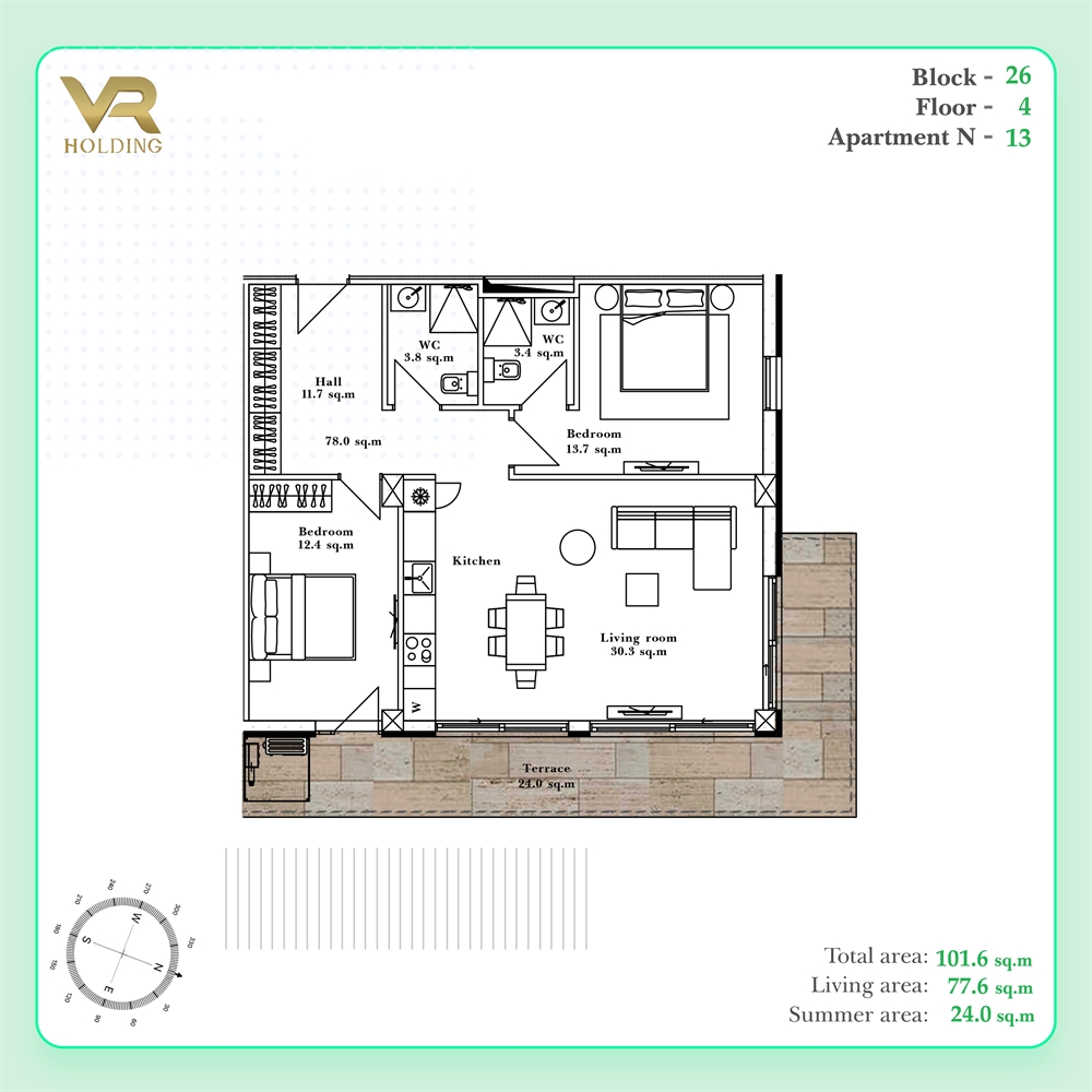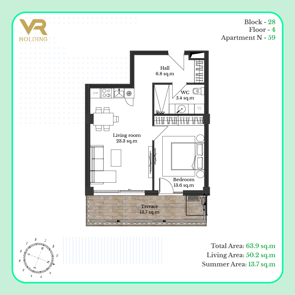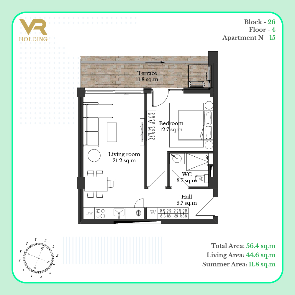 ბინა 31 - 56.4 კვ.მ. - თავისუფალია