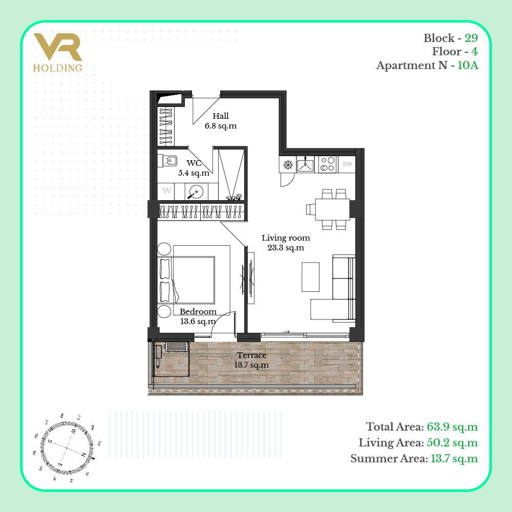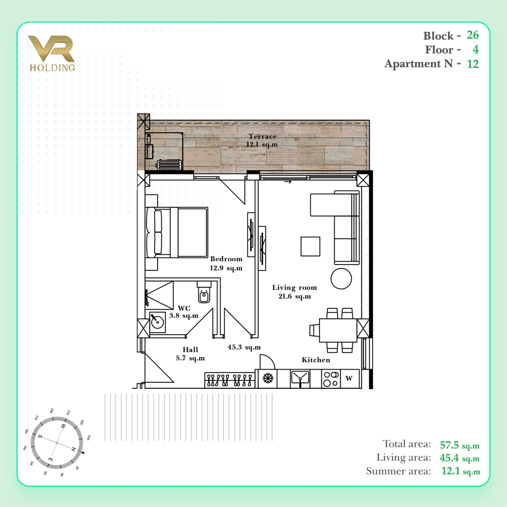 ბინა 10 - 56.7 კვ.მ. - თავისუფალია
