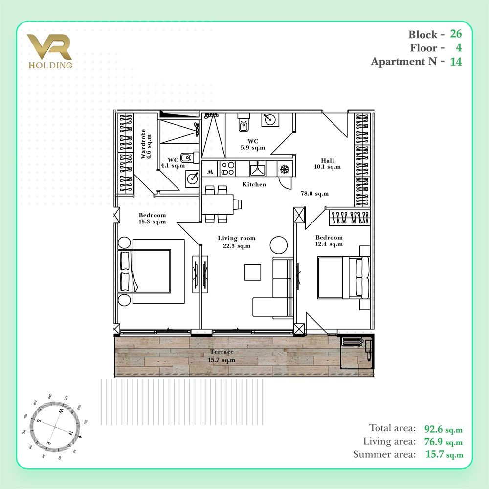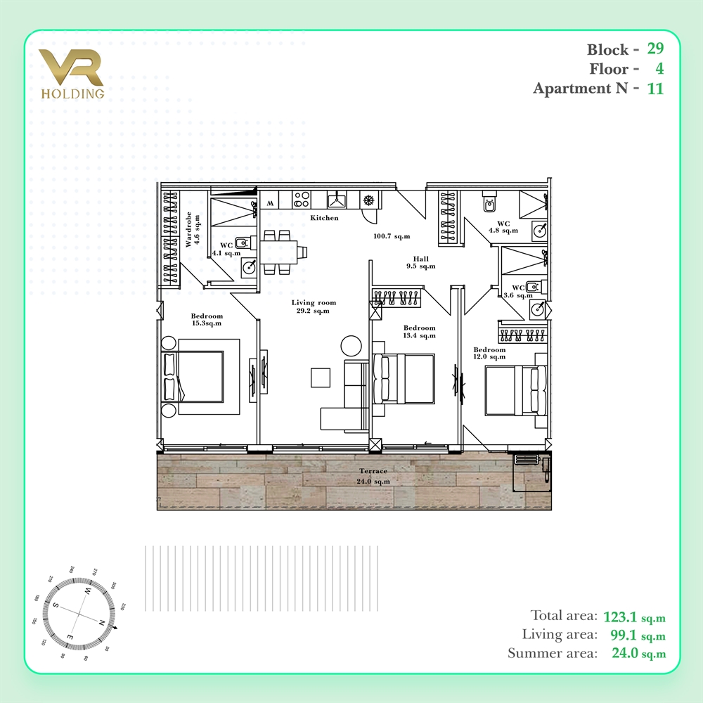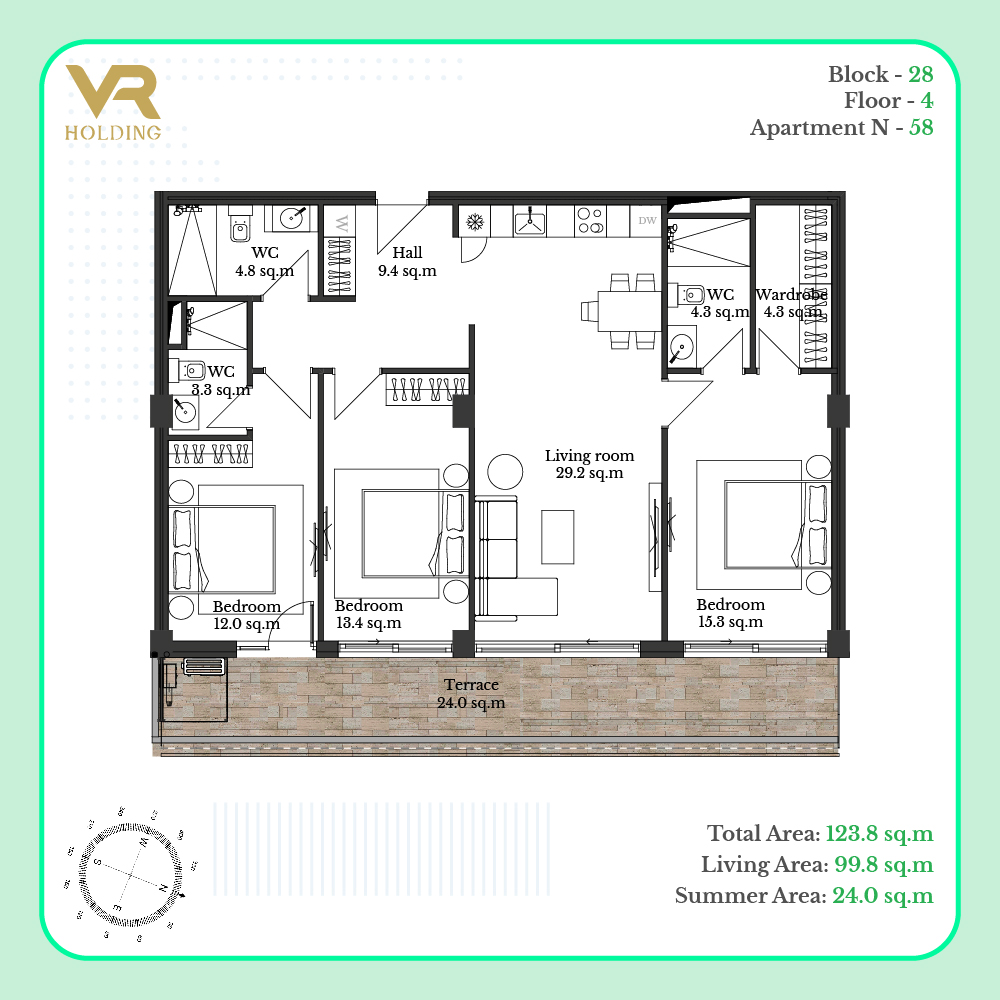 ბინა 58 - 123.8 კვ.მ. - თავისუფალია