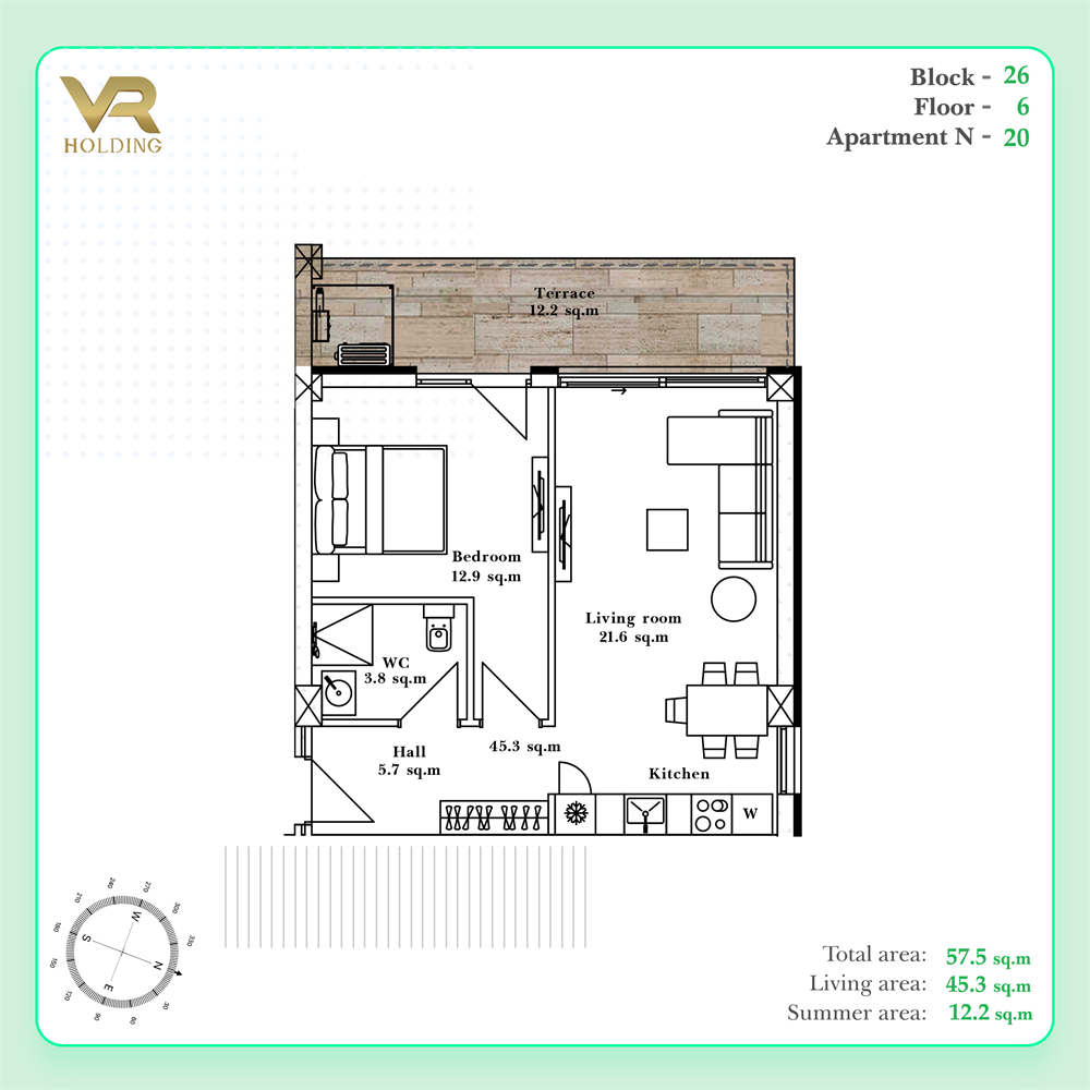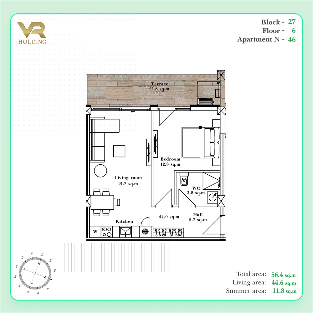ბინა 18 - 56.4 კვ.მ. - თავისუფალია