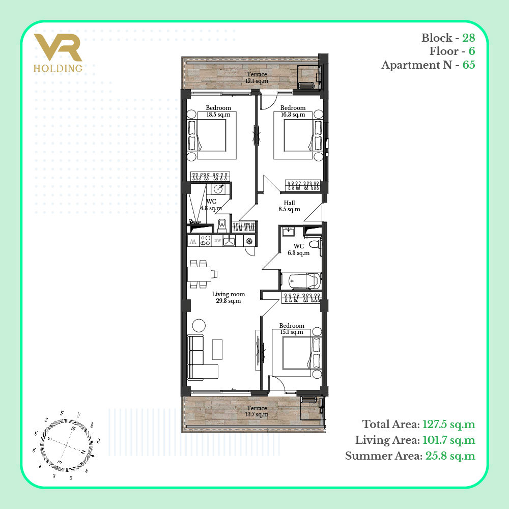 ბინა 65 - 127.5 კვ.მ. - თავისუფალია