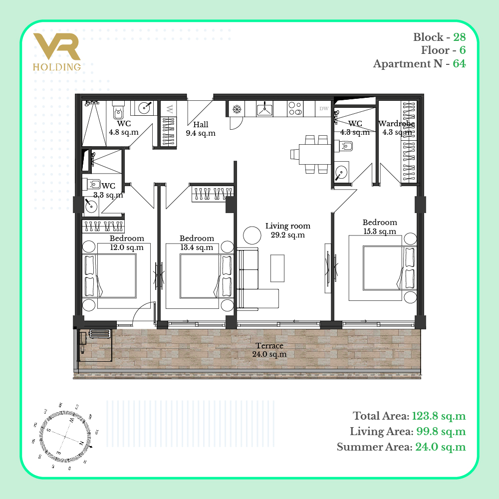 ბინა 64 - 123.8 კვ.მ. - თავისუფალია