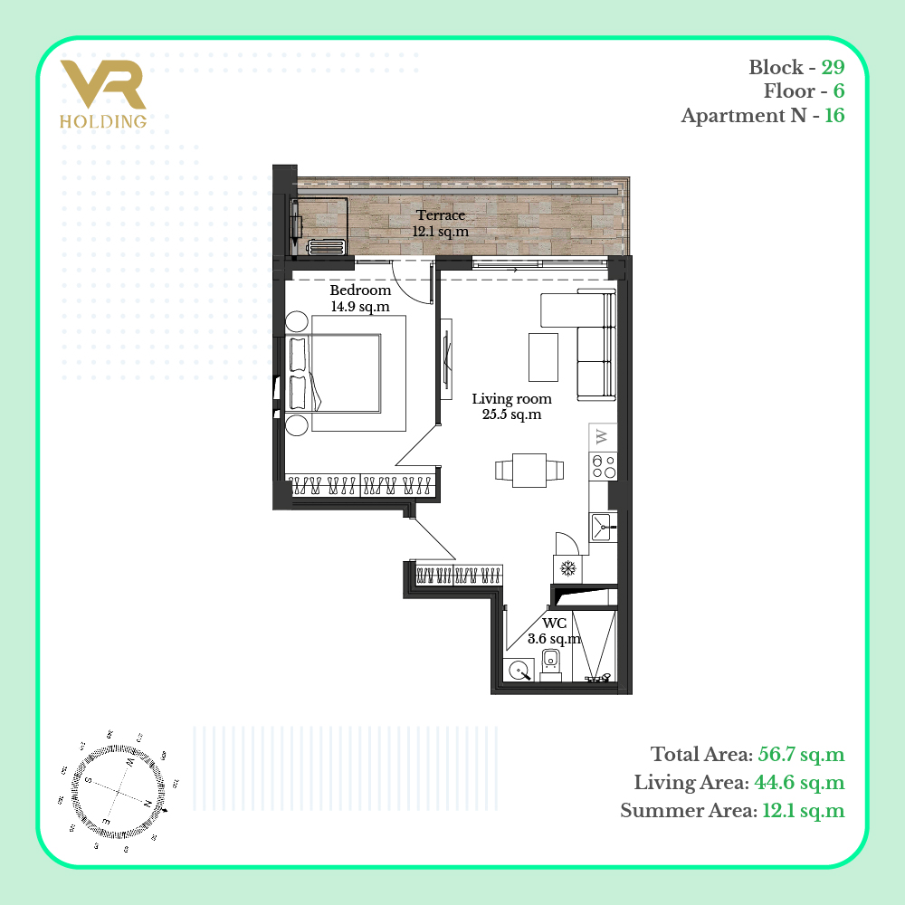 ბინა 16 - 56.7 კვ.მ. - თავისუფალია