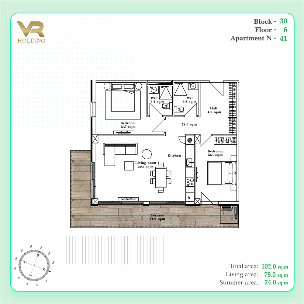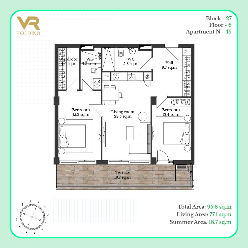 ბინა 45 - 95.8 კვ.მ. - დაჯავშნილია