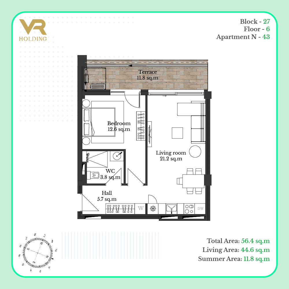 ბინა 43 - 56.4 კვ.მ. - თავისუფალია