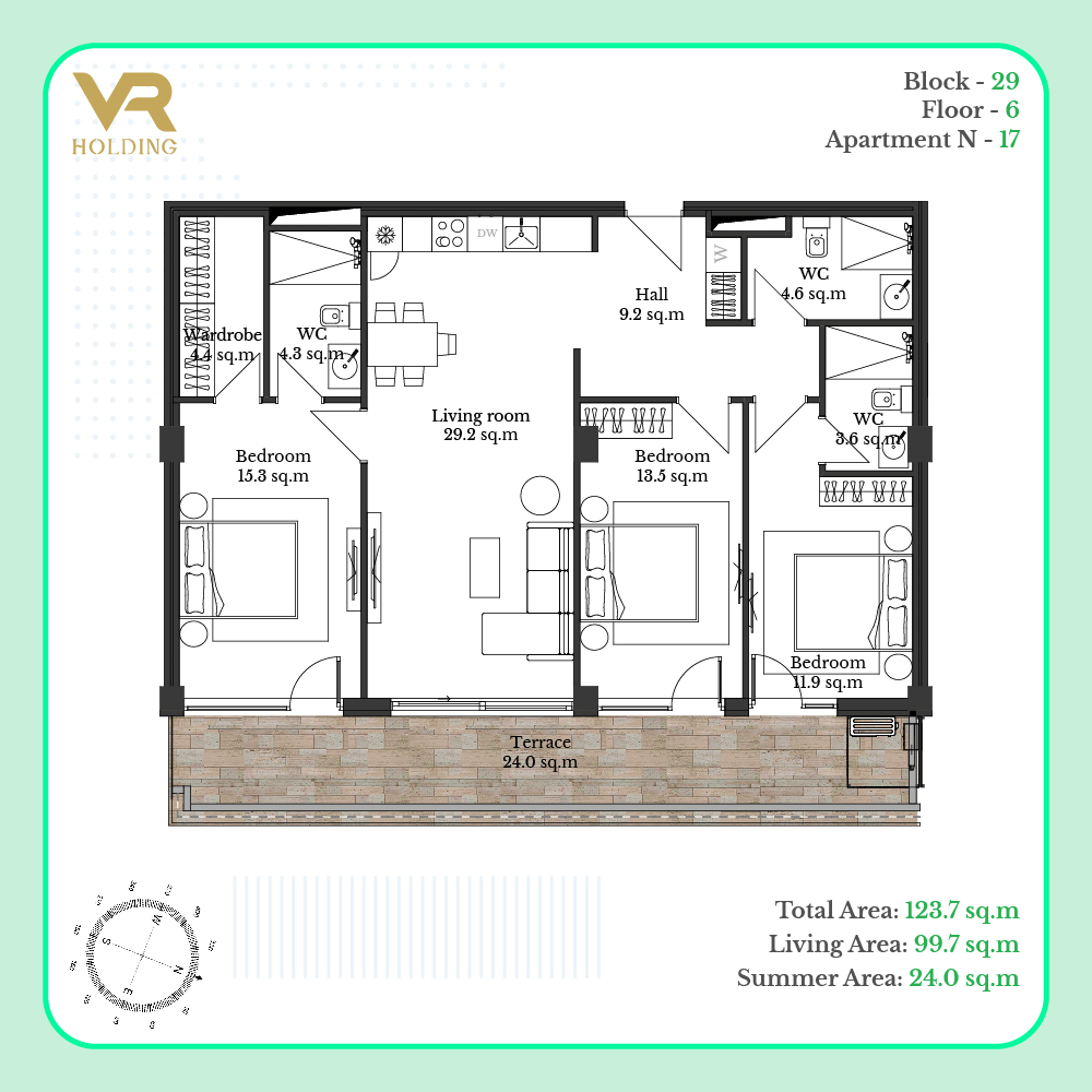ბინა 17 - 123.7 კვ.მ. - თავისუფალია