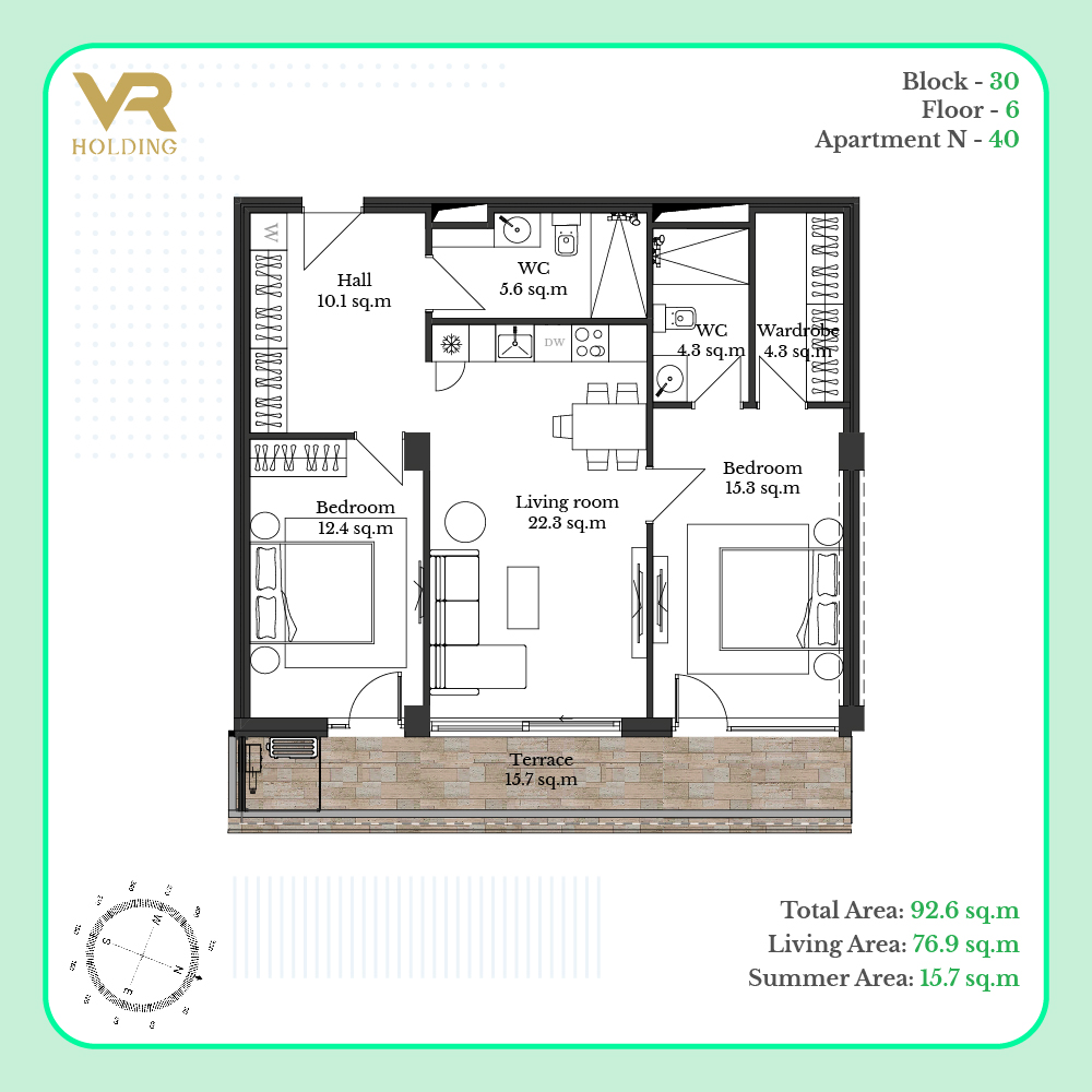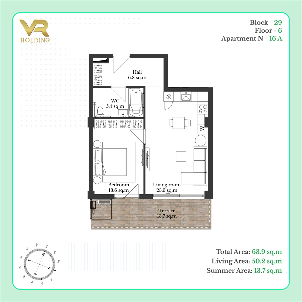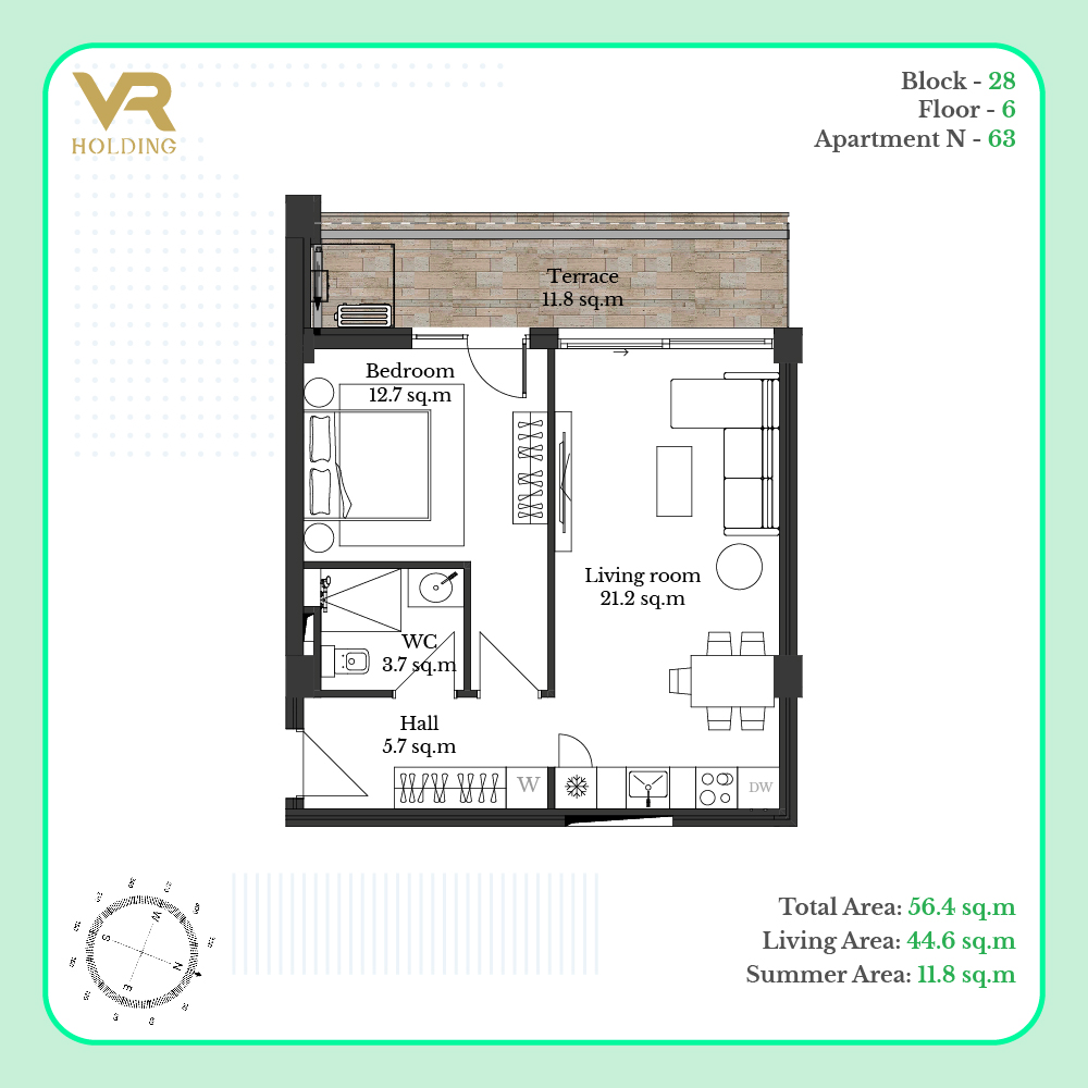 ბინა 63 - 56.4 კვ.მ. - თავისუფალია