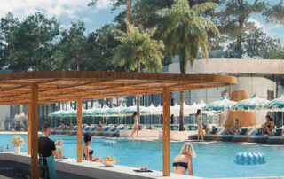 პროექტებში გათვალისწინებულია საცურაო აუზები, როგორც ღია, ასევე დახურული ინფრასტრუქტურით